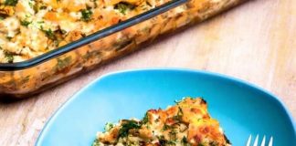Πασπαλίζουμε με κίτρινο τυρί και ψήνουμε για 10-15 λεπτά