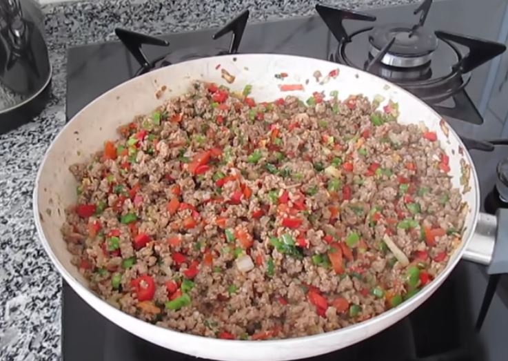 Σε ένα τηγάνι σε μέτρια φωτιά βάζουμε 2 κουταλιές λάδι και σοτάρουμε το κρεμμύδι και το σκόρδο έως ότου πάρουν ένα διαφανή χρώμα προσθέτουμε τον κιμά και ανακατευουμε έως ότου αλλάξει χρώμα.
