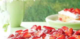 Βγάζουμε από το ψυγείο και στρώνουμε την άλλη μισή λευκή κρέμα και βάζουμε στο ψυγείο για 15 λεπτα
