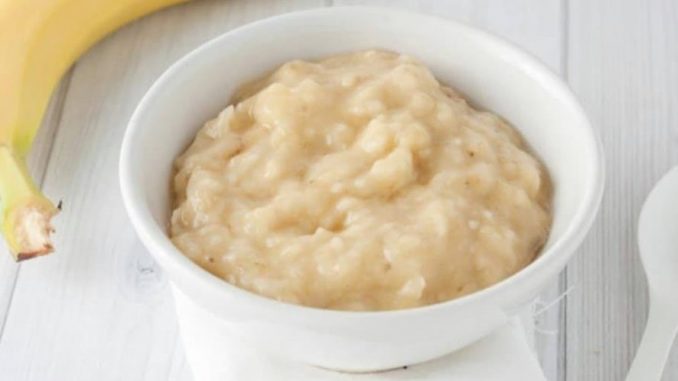 Αναμίξτε με το νερό: Βάλτε τον πολτό της μπανάνας σε μια κατσαρόλα και προσθέστε το βραστό νερό. Αφήστε το μείγμα να σταθεί για περίπου 30 λεπτά.