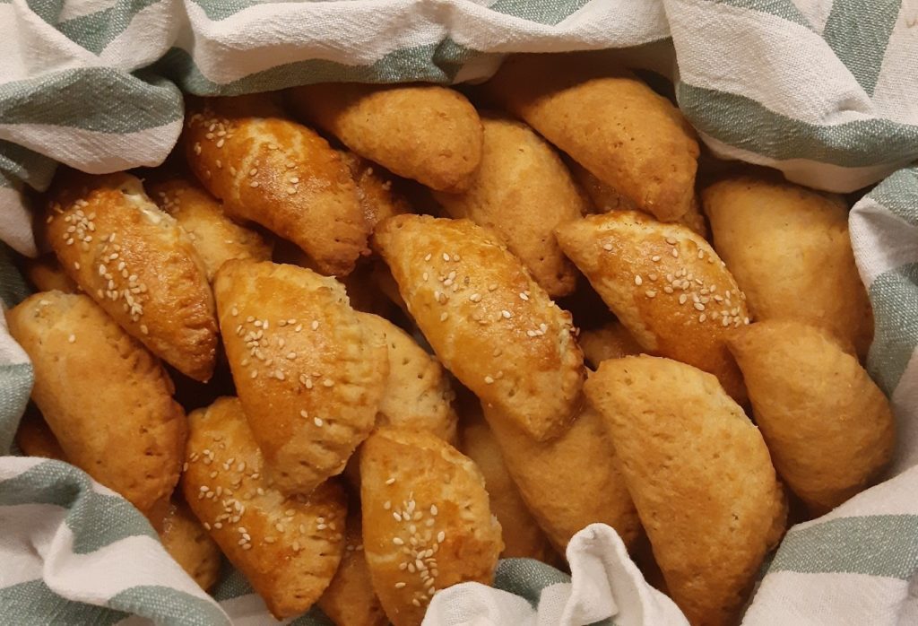 Εάν θέλουμε τα αλείφουμε με αυγό και τα πασπαλίζουμε με σουσάμι .