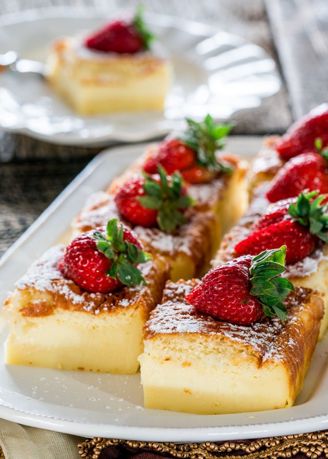 Αφήνουμε το magic cake στον πάγκο να κρυώσει εντελώς και μετά σκεπάζουμε με μία διάφανη μεμβράνη και το τοποθετούμε στο ψυγείο από 4 έως 12 ώρες ή για ένα ολόκληρο βράδυ για να σταθεροποιηθεί. Δεν θα «πανιάσει» όπως τα κοινά κέικ γιατί είναι ένα γλυκό ψυγείου.