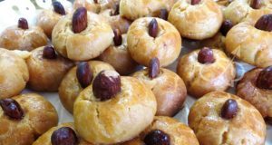 Τους κυκλους τους φτιαχνουμε με την σακούλα ζαχαροπλαστικής πάνω από τη ζύμη.