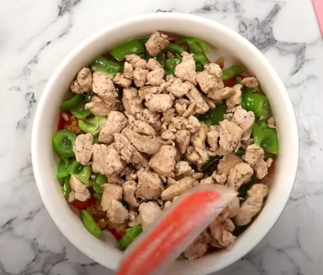 Προσθέτουμε μετά πιπέρι και ανακατευουμε να μελώσει το κοτόπουλο.