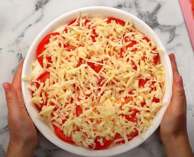 στρώνουμε άλλη μια στρώση ντομάτες.