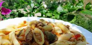 Στρώνουμε τον πάτο του ταψιού μας με 3-4 ζυμαρικά, σπασμένα ή κομμενα για να καλυψουν το ταψί.