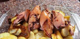 1 μεγάλο κρεμμύδι σε ροδέλες 2 μέτριες πατάτες σε λεπτές ροδέλες