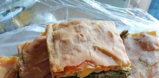 Την υπόλοιπη μισή ζύμη την τρίβουμε με το χέρι με τσιμπηματα πάνω από την γέμιση.