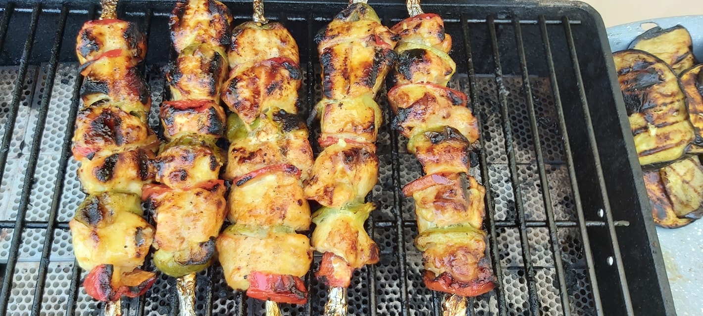 Προθερμάνετε το μπάρμπεκιου σας και ψήστε αργά τα σουβλάκια. Γιατί αργά; Επειδή η μαρινάδα έχει μέλι που κάνει το κρέας να καίει πιο γρήγορα στην επιφάνεια. Μην βιάζεστε ψήστε αργά και γυρίζετε τα σουβλάκια κάθε 3-4 λεπτά.