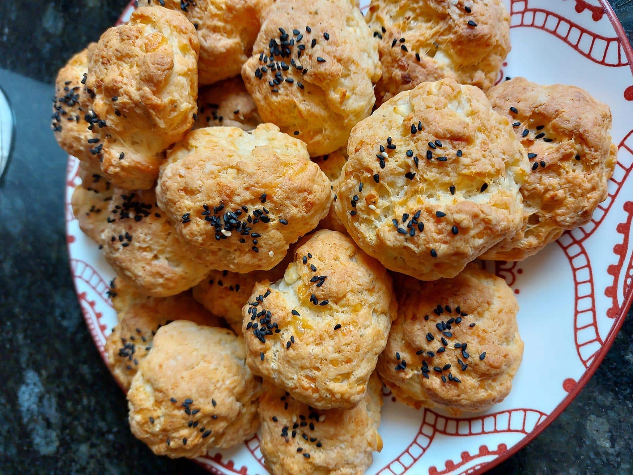 Τοποθετούμε σε ταψί με αντικολλητικό χαρτί και τα αλείφουμε με αραιωμένο κρόκο. Αν μας αρέσει πασπαλίζουμε με σουσάμι.