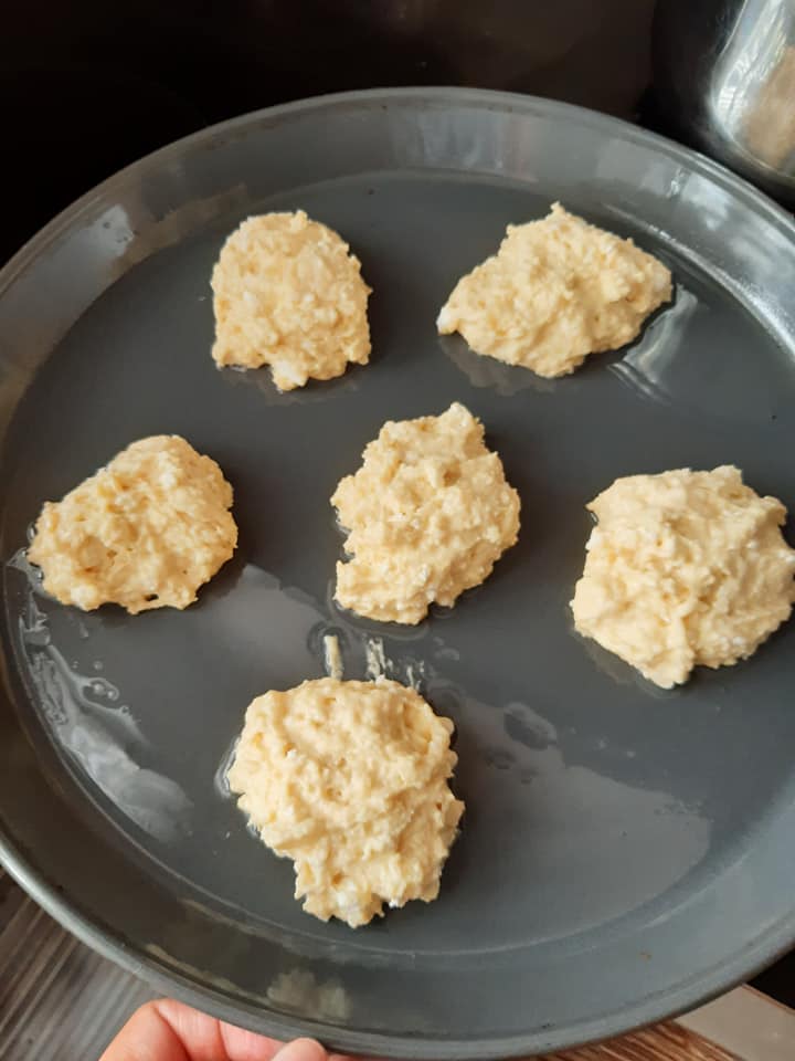 Ανακατεύω και τρίβω το τυρί με το μάτι. Προσθέτω αρκετό αλεύρι για να γίνει μια πολύ πηχτή και κολλώδης ζύμη.