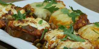- Τα χωρίζουμε στην μέση και στην μία άκρη τοποθετούμε ένα κομμάτι Φέτα.