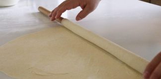 Πατήστε με το χερι σας τα 2/3 της ζύμης στο κάτω μέρος να κάνει μια βάση