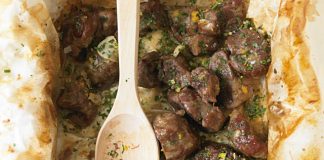 Βγάζουμε το κρέας από το τηγάνι και το αφήνουμε στην άκρη για μερικά λεπτά σε ζεστό πιάτο.