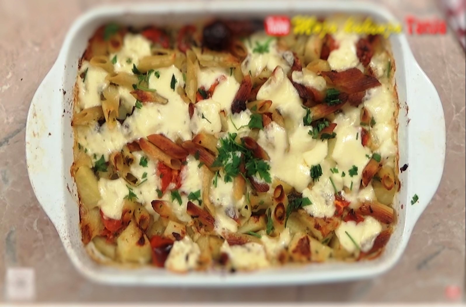 Μια συνταγή για ένα γρήγορο και εύκολο γεύμα με μακαρόνια και λαχανικά και ολόκληρη η οικογένεια θα είναι γεμάτη και ιδανική για τους επισκέπτες που εκπλήσσουν. Η συνταγή χωρίς κρέας είναι πολύ νόστιμη και παρασκευάζεται σε 10 λεπτά συν χρόνο στο φούρνο.