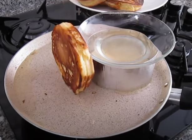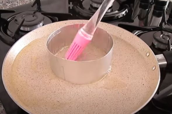 Τοποθετήστε ένα ρηχό τηγάνι στην κουζίνα αλείψτε μία κουταλιά λάδι φτιάξτε ένα καλούπι σαν αυτό στην φωτό