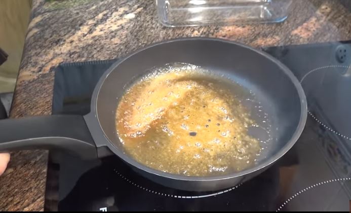 και αδειάζουμε την καραμέλα μέσα στην φόρμα του κέικ και την απλώνουμε.
