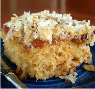 Απενεργοποιήστε τη φωτιά και προσθέστε την καρύδα, και ξηρούς καρπούς και τη βανίλια και στη συνέχεια επικαλύψτε το κέικ με το γλάσσο ενώ είναι ακόμα ζεστό.