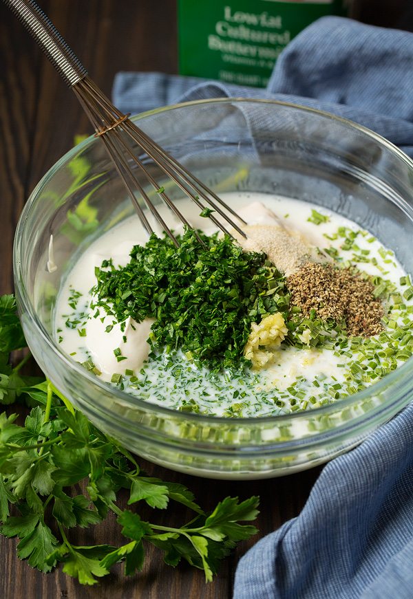 - Εάν το ξινόγαλο που χρησιμοποιήσατε ήταν παχύ, ίσως χρειαστεί λίγο γάλα για να αραιώσει, αν το ξινόγαλα είναι λεπτό, τότε μάλλον δεν θα χρειαστείτε γάλα. Σημειώστε ότι το dressing πρέπει να είναι στην πηχτή πλευρά όμως.
