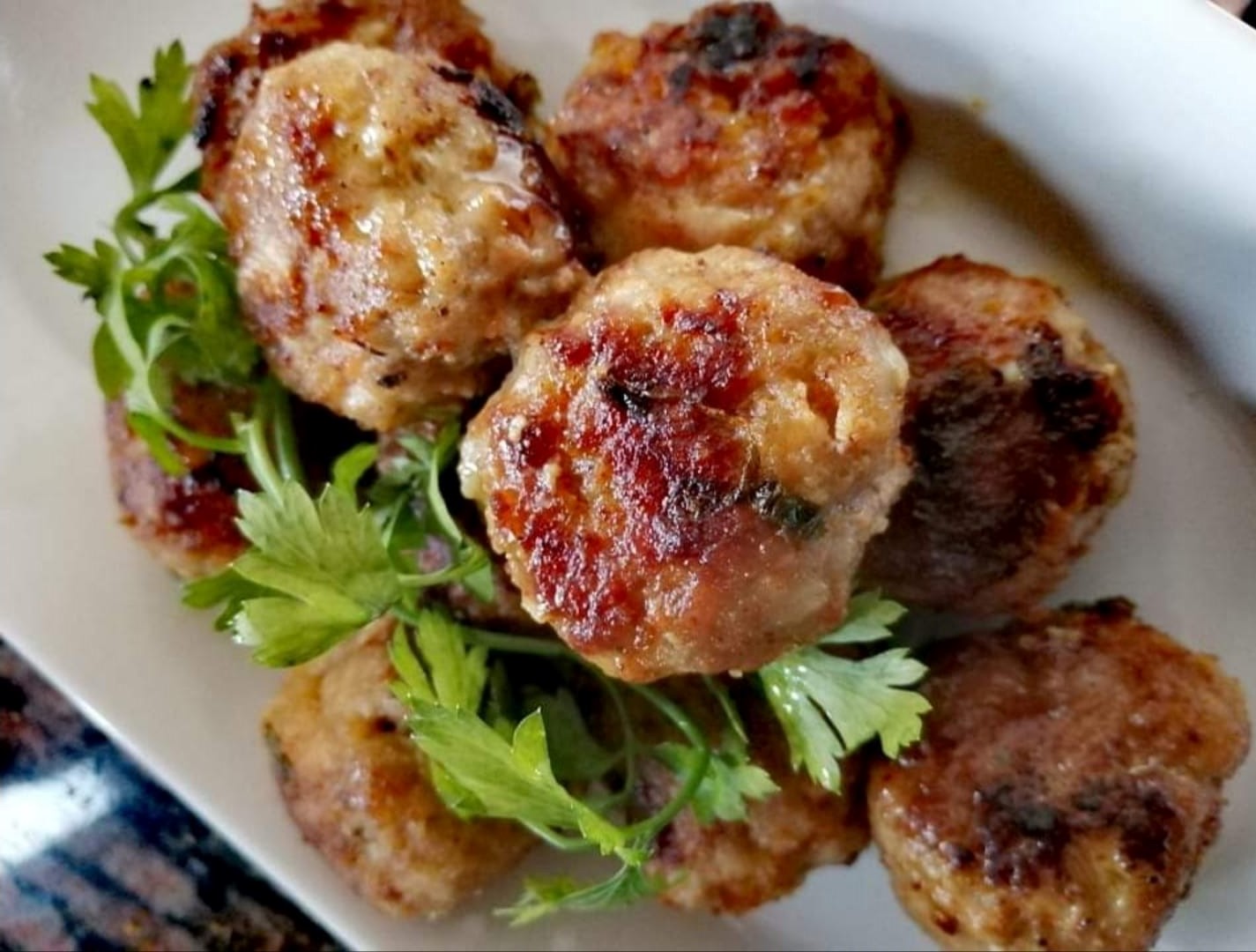 Ζεσταίνουμε ένα μεγάλο αντικολλητικό τηγάνι με λίγο λάδι, τοποθετούμε τα κεφτεδάκια, κρατάμε τη φωτιά σε μέτρια και τα ψήνουμε γυρίζοντάς τα συχνά,  είναι σημαντικό να τα γυρίζουμε συχνά για να ψηθούν ομοιόμορφα.