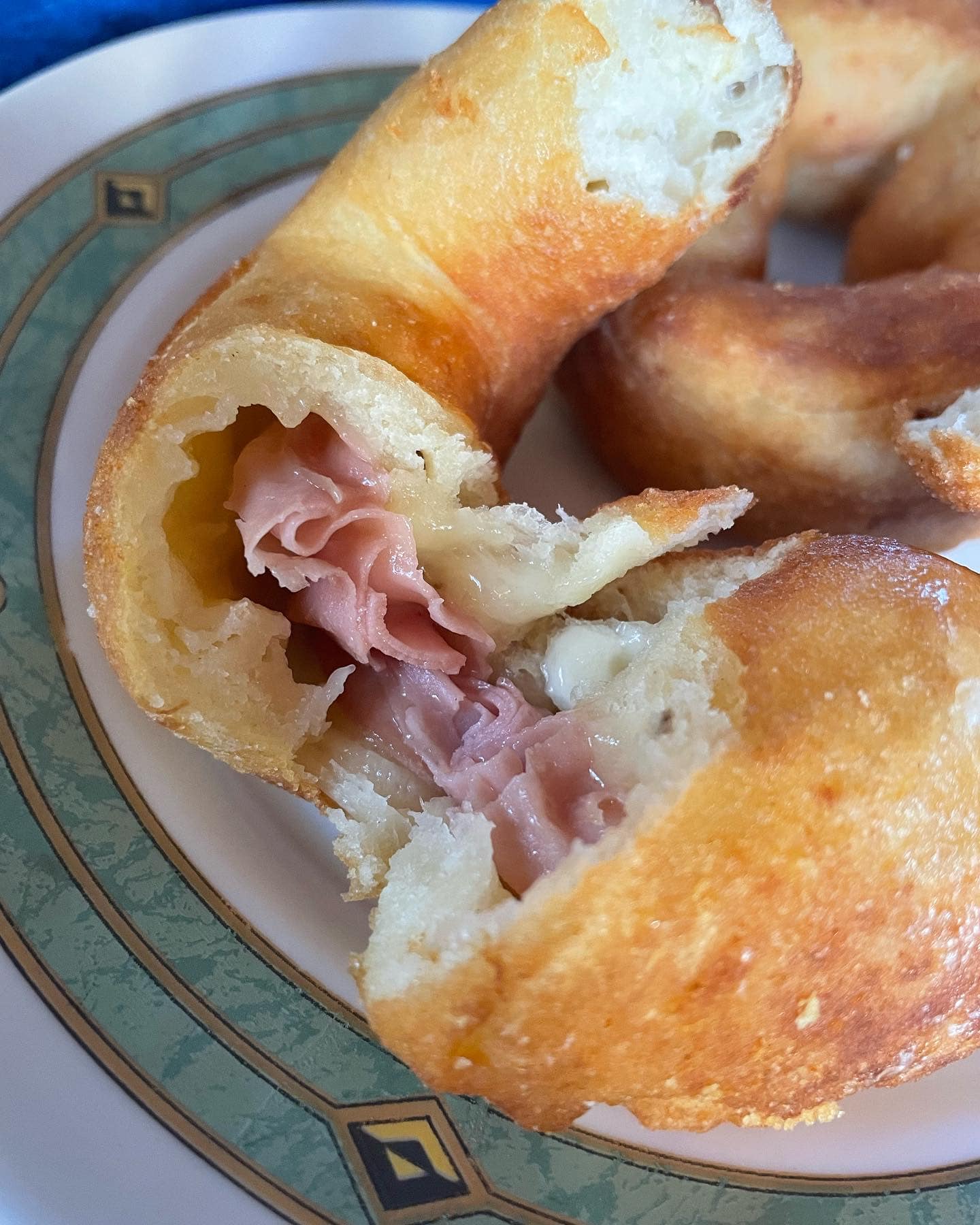 Προσέχουμε να σφραγίσουμε καλά όλες τις άκρες του ντόνατ, αλλιώς θα βγει η γέμιση.