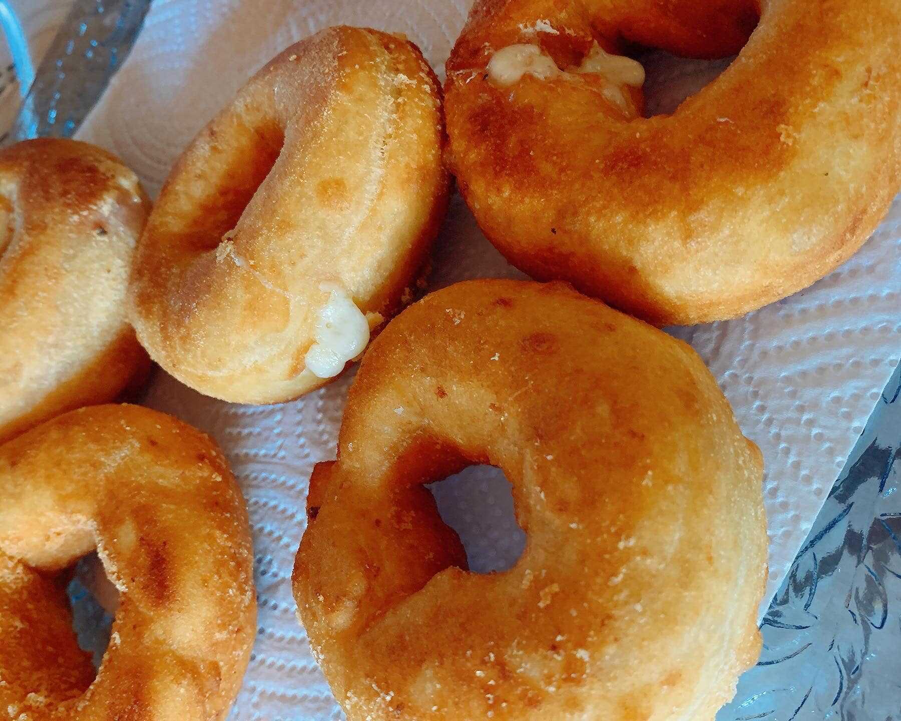 Προσέχουμε να σφραγίσουμε καλά όλες τις άκρες του ντόνατ, αλλιώς θα βγει η γέμιση.