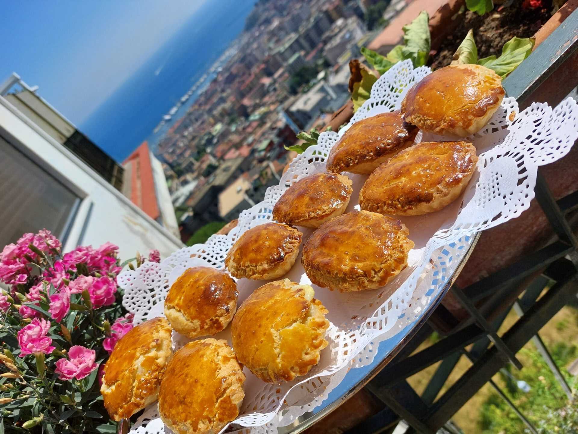 Τρυπάμε τα καπάκια σε πολλά σημεία, τα τοποθετούμε, κάνουμε τις δύο ζυμες να κολλήσουν καλά, κόβουμε την περίσσεια και σφραγίζουμε με τις οδοντώσεις ενός πιρουνιού. Ανακατεύουμε τον κρόκο του αυγού με την κρέμα και αλείφουμε την επιφάνεια. Ψήνουμε σε προθερμασμένο φούρνο στους 180 βαθμούς Κελσίου για 25/30 λεπτά. Ελέγξτε απο τον χρωματισμό ποτε ειναι ετοιμα