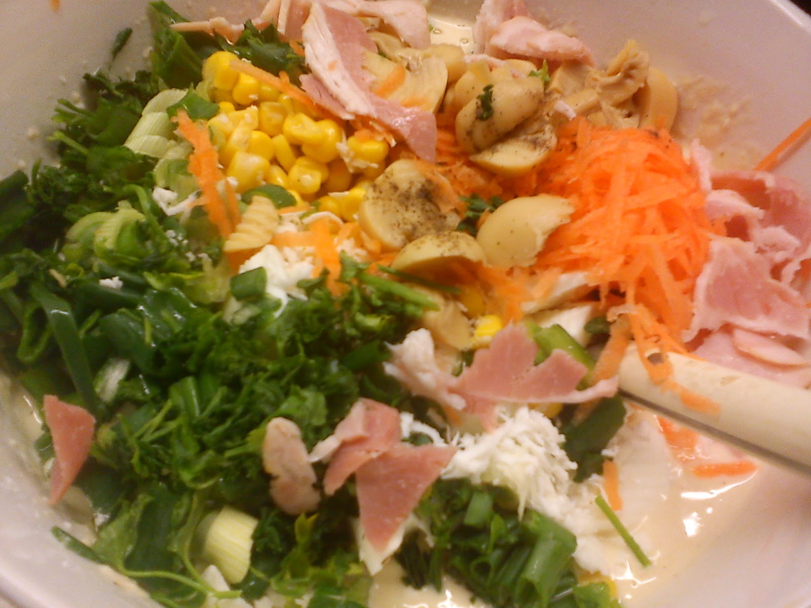 Ανακατευουμε καλα το χειλο και προσθετουμε ολα τα υπολοιπα συστατικα ψιλοκομμενα.