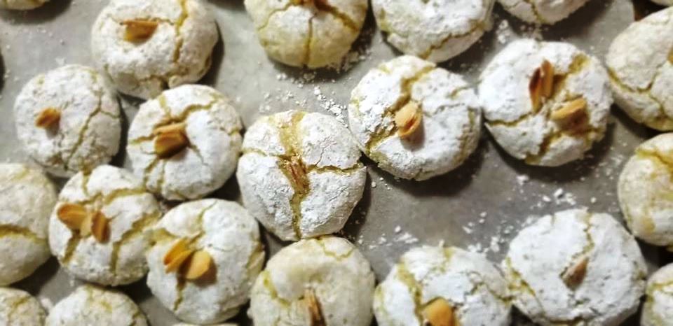 Δημιουργήστε μια μπάλα και στη συνέχεια κυλήστε το μέσα στην ζάχαρη άχνη. Τοποθετήστε τα στο ταψί και ελαφρώς με το χέρι σας πατήστε από πάνω να ισιώσει.