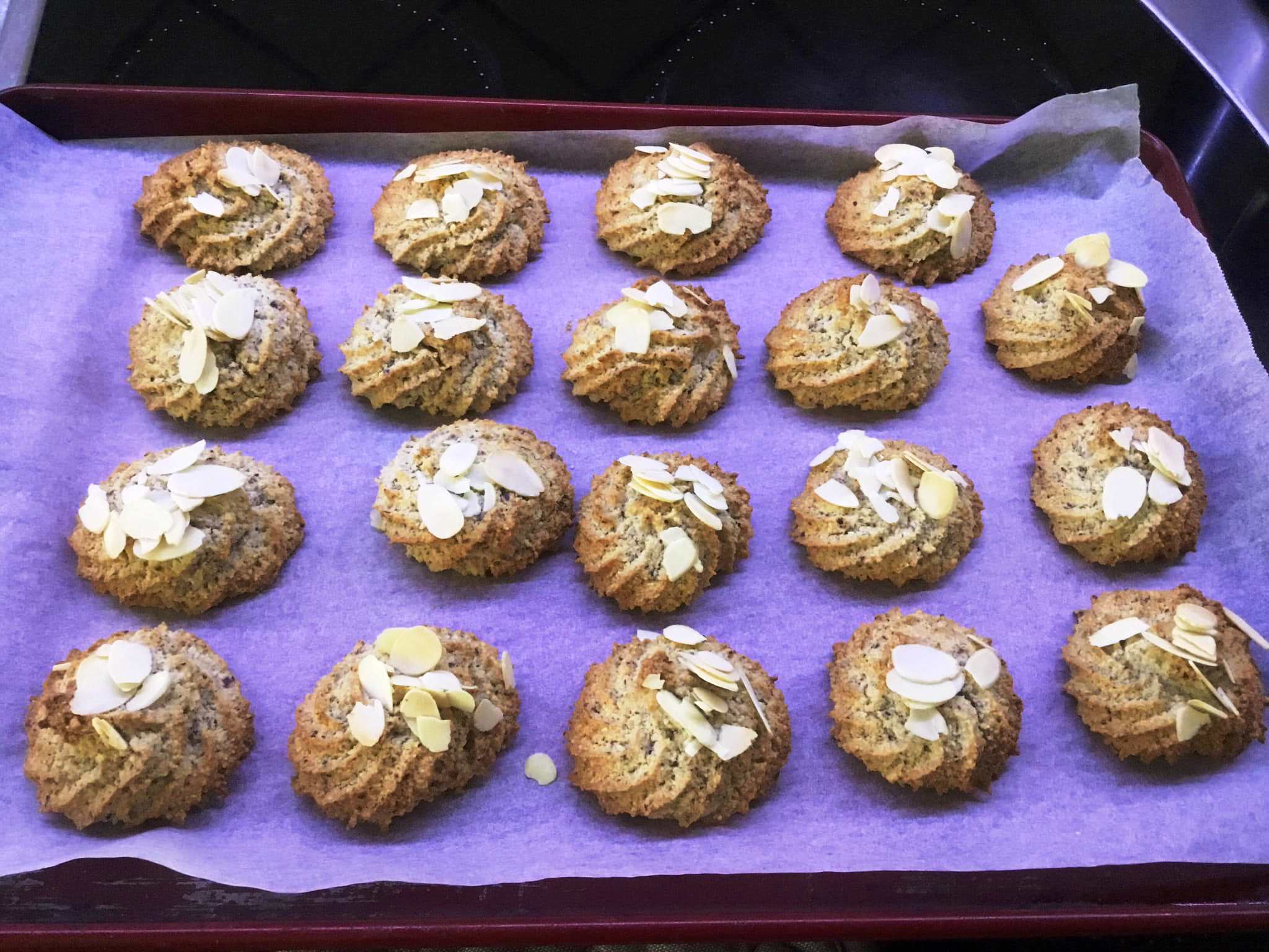 Ψήνουμε σε προθερμασμένο φούρνο 175* βαθμού για περίπου 15 λεπτά ή μέχρι να είναι χρυσοκάστανα.