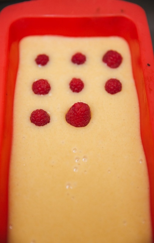 και προσθέτετε μερικά μούρα κομμένα στη μέση τα οποία βυθίζετε στο μίγμα.
