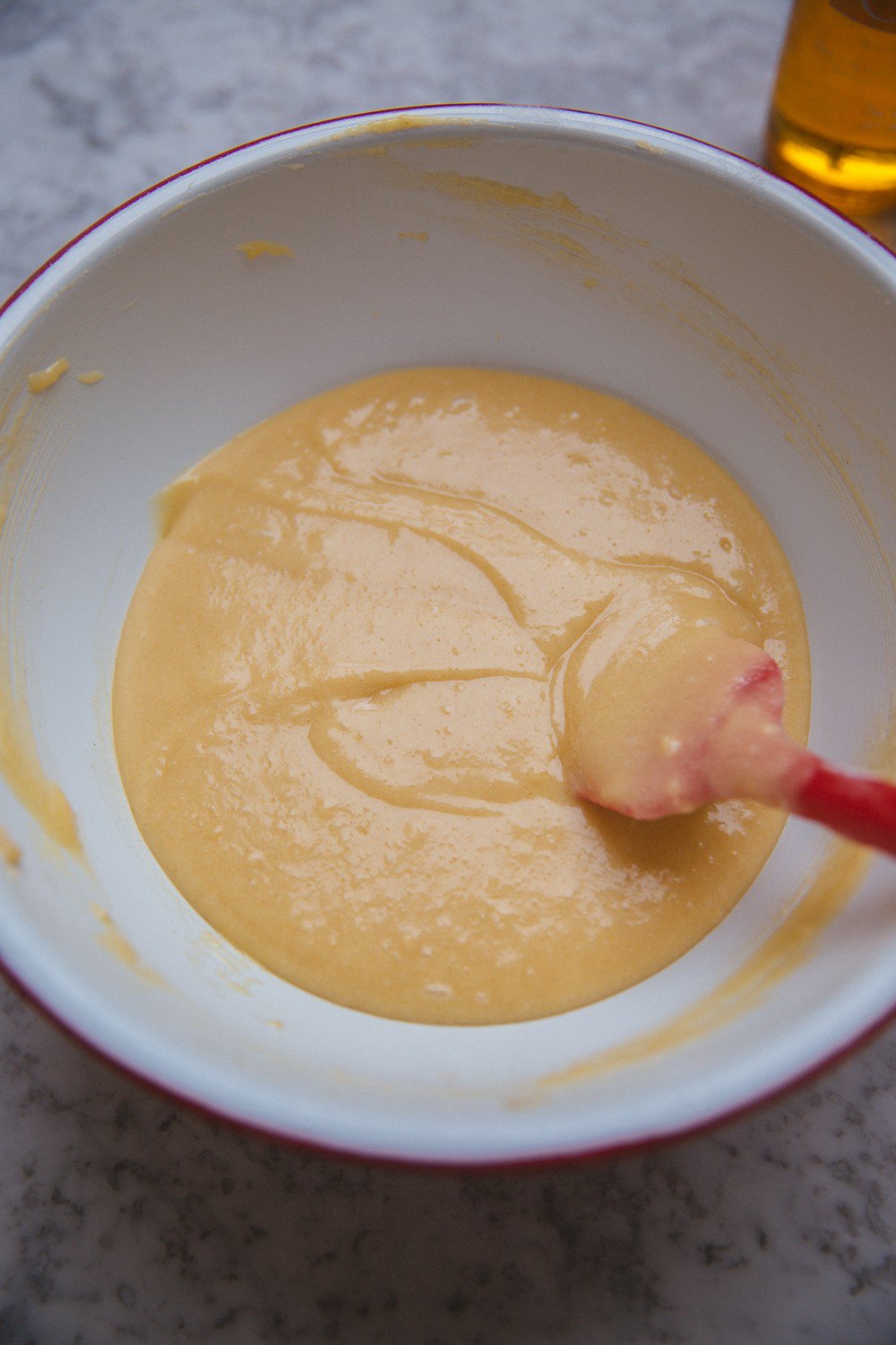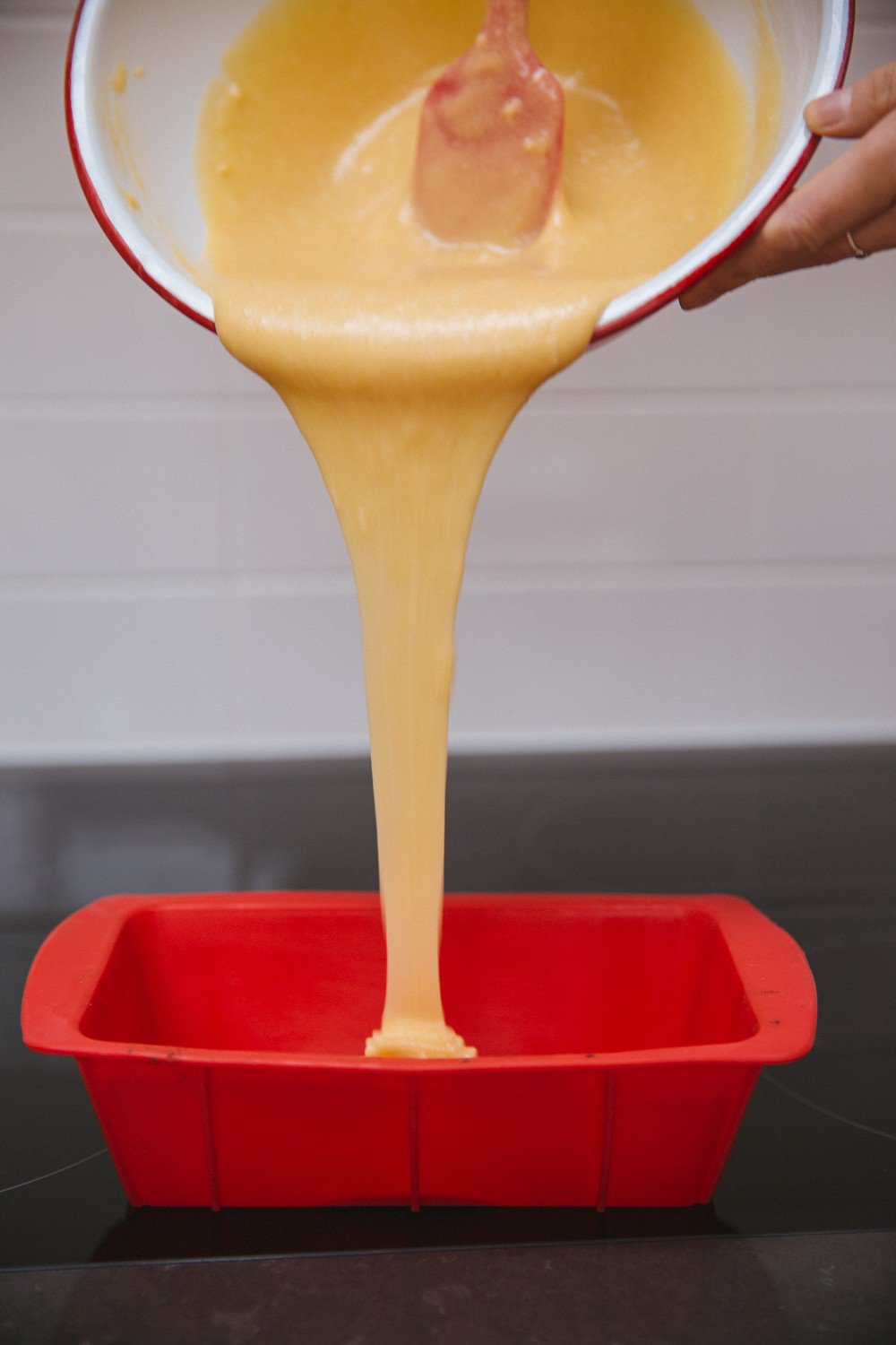 Ρίχνετε στη φόρμα του κέικ το μίγμα