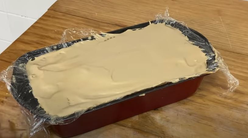 Βγάζουμε από ψυγείο χαλαρώνουμε την μεμβρανη και το αναποδογυρίζουμε σε μία πιατελα και αφαιρουμε την μεμβράνη.