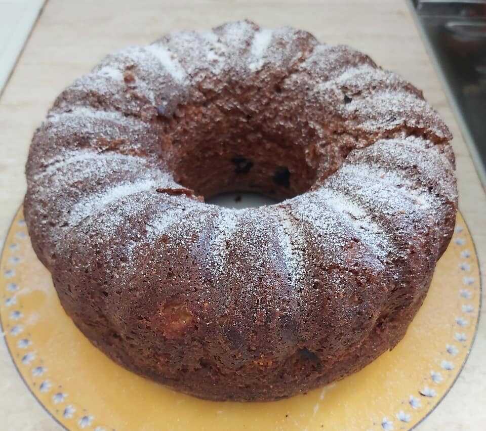 6. Ρίξτε το μείγμα σε μια βουτυρωμένη και αλευρωμένη φόρμα κέικ και ψήστε. Στο φούρνο μου χρειάζονται περίπου. 60-70 λεπτά. ΤΟ ΚΕΙΚ ΠΡΕΠΕΙ ΝΑ ΕΧΕΙ ΩΡΑΙΟ ΚΑΦΕ ΧΡΩΜΑ, δείτε φωτογραφίες.