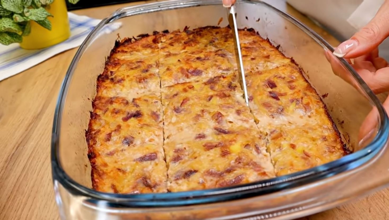 Λαδώνουμε ενα πυρέξ και ριχνουμε το μείγμα και το ισιώνουμε, με ένα μαχαίρι το χωρίζουμε σε κομμάτια.