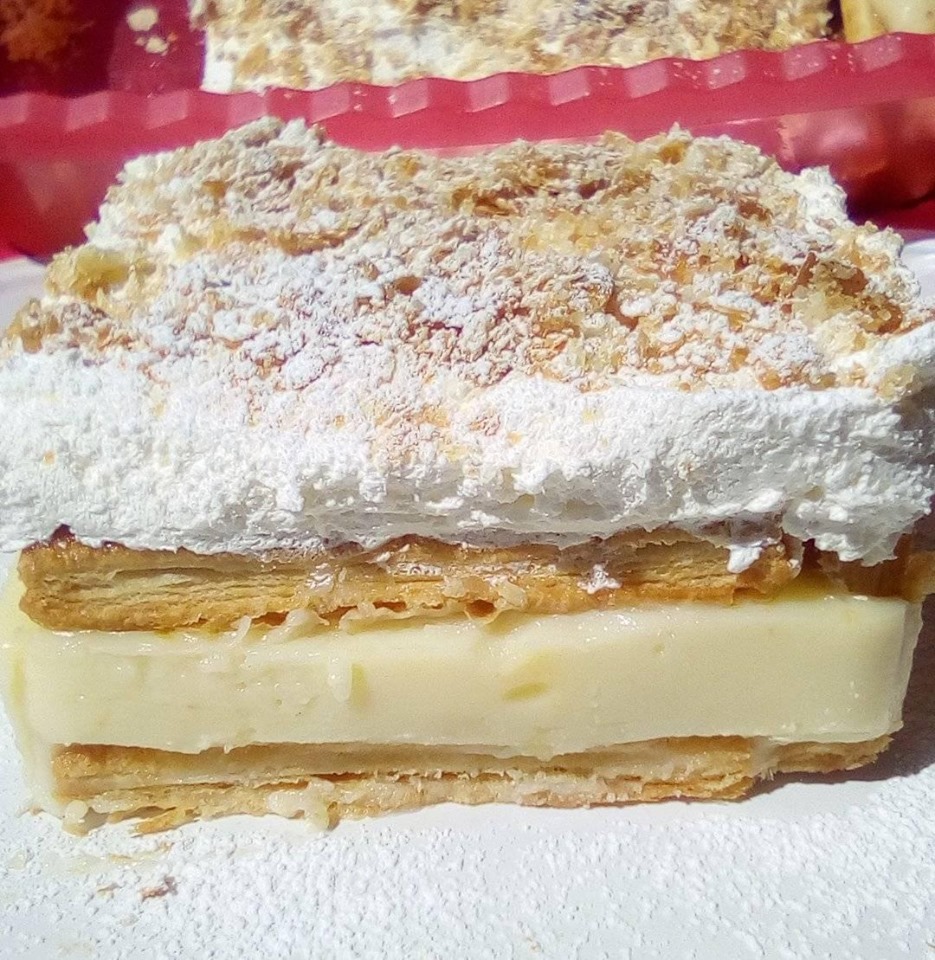 Την τοποθετουμε πανω στα σφολιατινια και πανω της τοποθετουμε σφολιατινια τελος βαζουμε την υπολοιπη σαντιγυ,τριβουμε πανω σφολιατινια και πασπαλιζουμε με αχνη ζαχαρη!