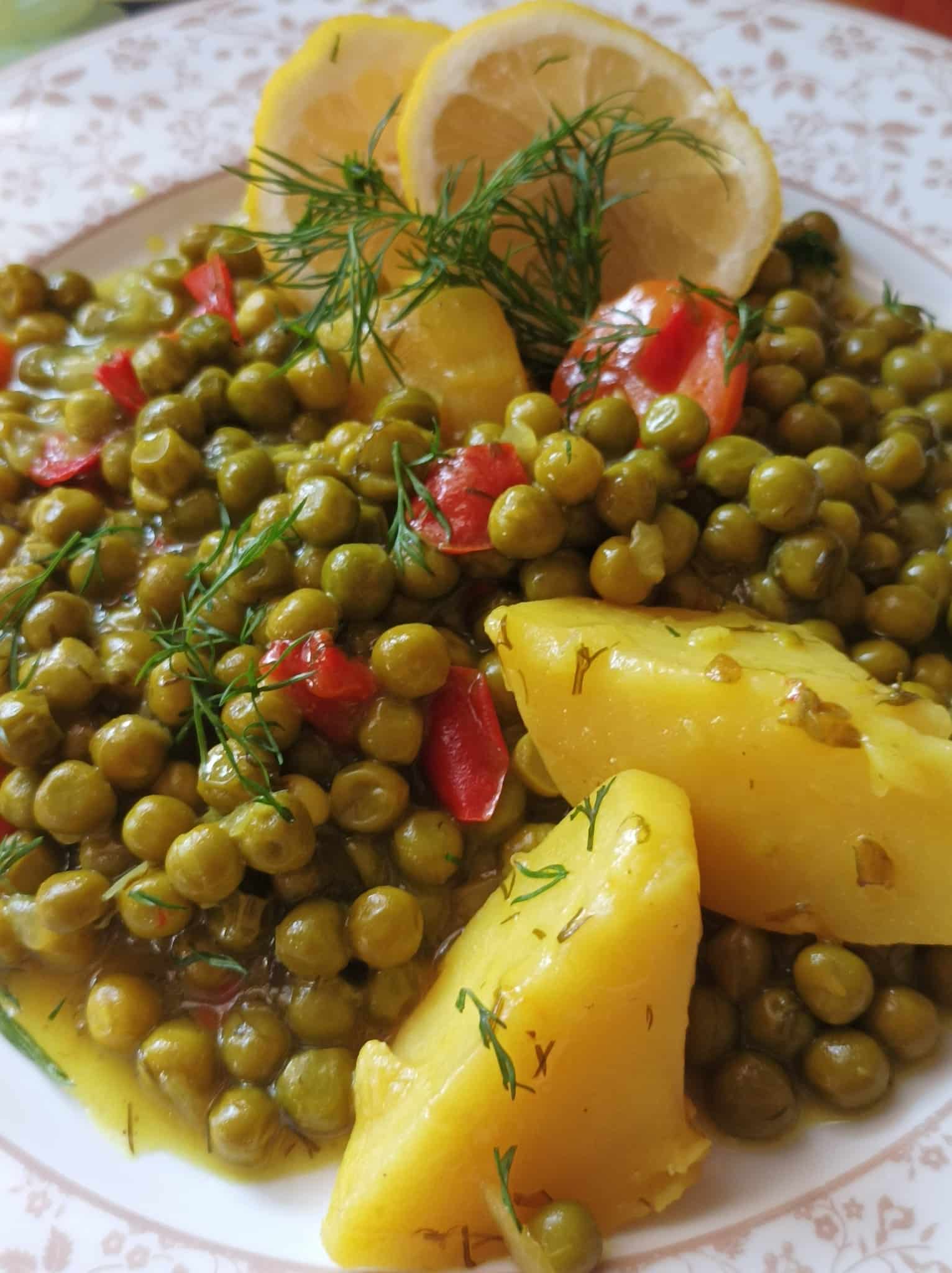 Όταν ο αρακάς ήταν έτοιμος, διέλυσα το κορν φλάουρ σε λίγο νερό και το πρόσθεσα στην κατσαρόλα.