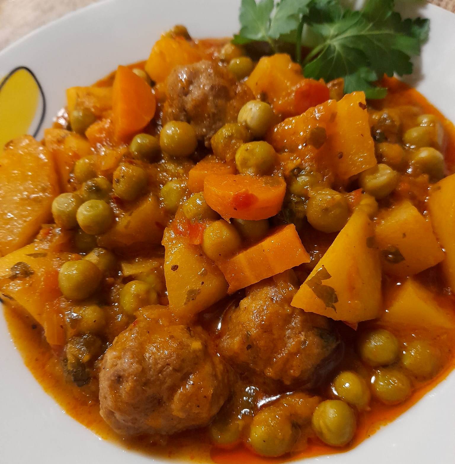 Περιμένετε μέχρι να σταματήσει ο βρασμός στην κατσαρόλα και σερβίρετε τους κεφτέδες με τα λαχανικά.