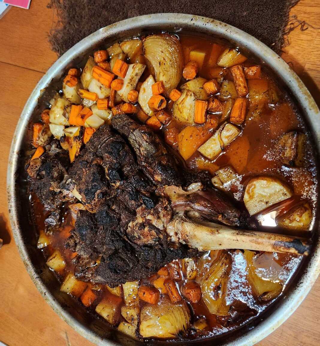 Καλύπτουμε με αλουμινόχαρτο ψήνουμε στους 190 βαθμούς για 3 ώρες