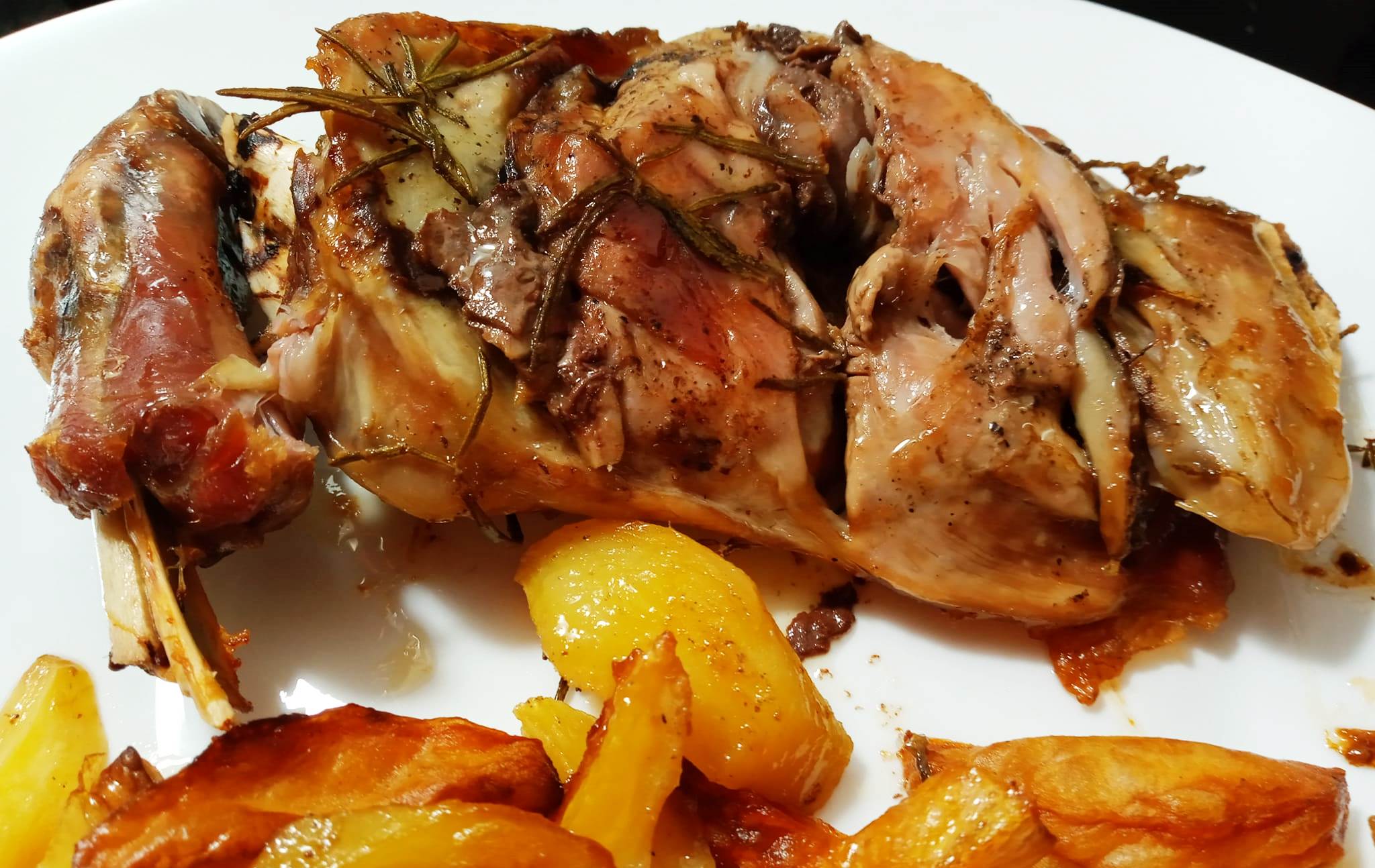 Σε αυτό το σημείο, ρίξτε το ξηρό λευκό κρασί στα ταψί στο φούρνο, και στη συνέχεια ψήστε στους 200 ° για μιάμιση ώρα.