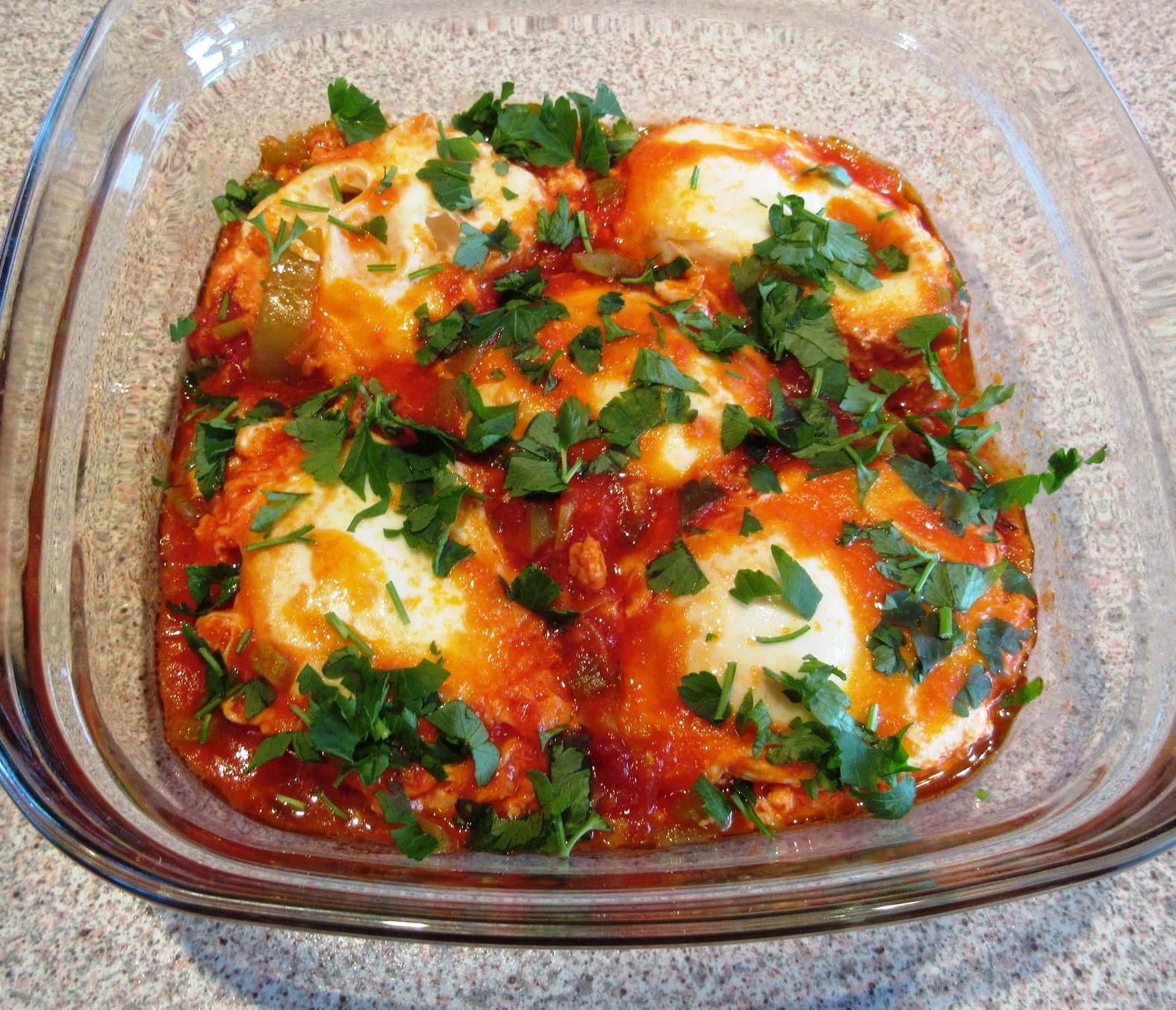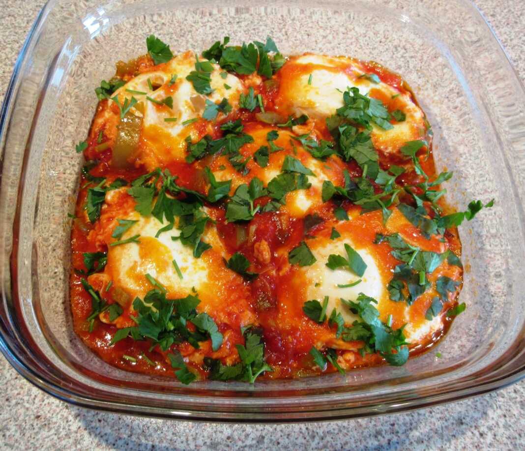 Αυγά σε ντομάτες στο τηγάνι