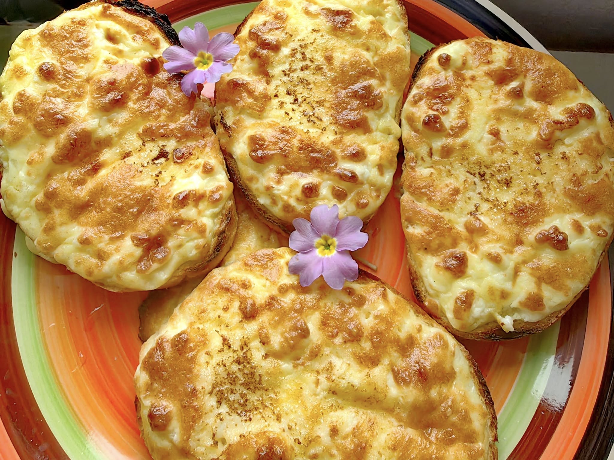 Αλείφω τις φέτες με μαργαρίνη /βούτυρο/ και τις απλώνω σε ταψί με χαρτί ψησίματος.