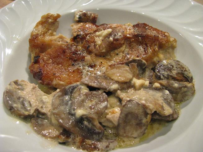 Στο τέλος, πρέπει απλώς να ρίξουμε την κρέμα πάνω στις μπριζόλες και τα μανιτάρια με τις πατατες που έχουμε ήδη βάλει. Καλύψτε την κατσαρόλα και βάλτε την στον κρύο φούρνο.