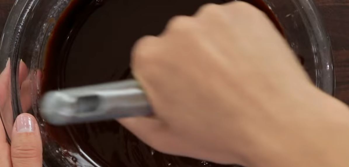 Ζεστάνετε 1/2 φλιτζάνι κρέμα γάλακτος (σε κατσαρόλα ή φούρνο μικροκυμάτων) μέχρι να σιγοβράσει στη συνέχεια, αφαιρέστε από τη φωτιά και ρίξτε πάνω στην σοκολάτα. Αφήνετε τα υπόλοιπα 2 λεπτά και στη συνέχεια ανακατεύετε από το κέντρο προς τα έξω μέχρι να σχηματιστει ένα υγρό γλασσο σοκολάτας.