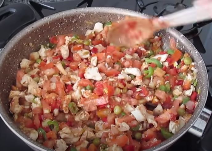λαχανικά και τα βάζουμε σε ένα μπολ. Όταν το κοτόπουλο έχει σχεδόν ασπρίσει τότε προσθέτουμε μέσα και όλα τα λαχανικά (πλην της ντοματας) και ανακατεύομαι περιστασιακά έως ότου μαλακώσουν. Μετα προσθέτουμε τα καρότα και τον αρακά. Στο τέλος ρίχνουμε τις ψιλοκομμένες ντομάτα τον πελτέ ντομάτας και τα μπαχαρικά και ανακατεύουμε με ένα ποτήρι νερό έως ότου να δέσουν όλα μαζί