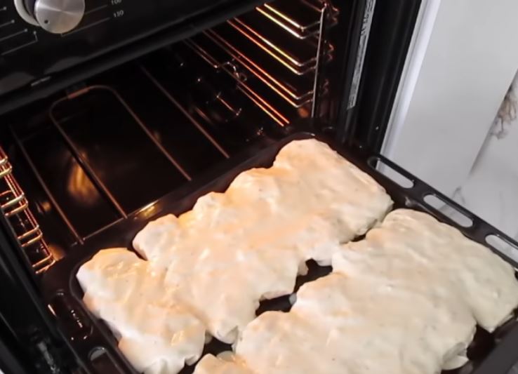 Σε ένα μπολακι στρώνουμε τα φύλλα όπως βλέπετε στην φωτο γεμιζετε με την γέμιση το κλείνετε και το βάζετε στο ταψί. Απλώστε από πάνω την μπεσαμελ με μια ξύλινη κουτάλα.