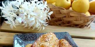 Ψήνουμε σε προθερμασμένο φούρνο στους 220 βαθμούς για 15 λεπτά. Αφήνουμε λίγο να κρυώσει κόβουμε να σερβίρουμε
