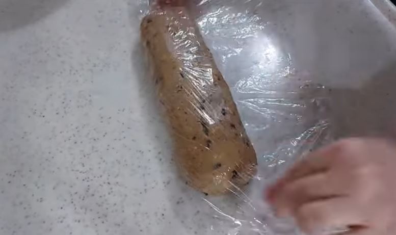 Φτιάχνουμε ζυμώνοντας μία μπισκοτένια ζύμη την διαμορφώνουμε σε μορφή κορμού και την τυλίγουμε μέσα σε μία μεμβράνη και τη βάζουμε στην καταψυξη για 20 λεπτά.
