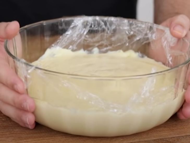 Αφαιρέστε από τη φωτιά, ρίξτε σε ένα δοχείο και καλύψτε με μεμβράνη που εφάπτεται την επιφάνεια της κρέμας μέχρι να κρυώσει.