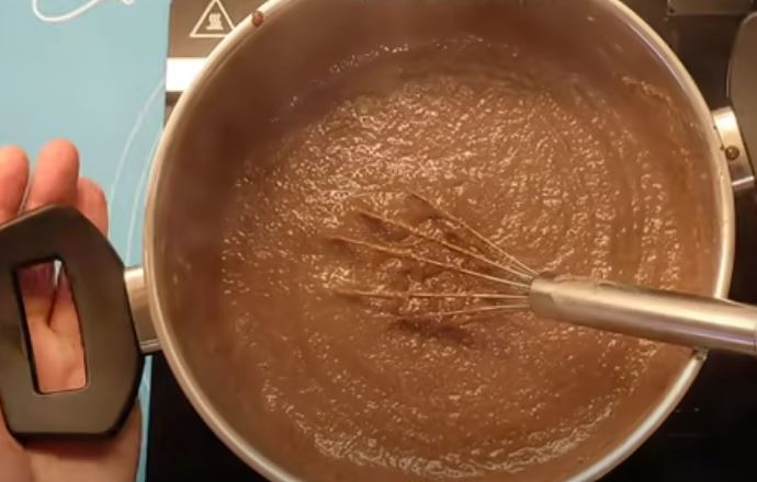 Στη συνέχεια εφόσον έχουν ανακατευτεί αρχίζουμε και προσθέτουμε το γάλα όλο και ανακατεύουμε πάλι με το σύρμα συνεχώς μέχρι να βράσει. θα πρέπει το μείγμα να πάρει μία υφή κρέμας και το αφήνουμε να βράσει 3 λεπτά ακόμη από την ώρα που θα αρχίζει να βγάζει φουσκάλες σαν λαβα.